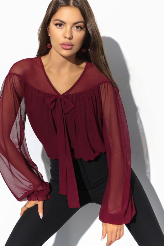 Бордовая блузка с длинными рукавами