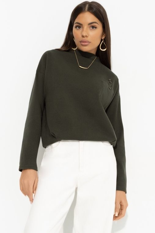 Джемпер зелёный с накладным карманом