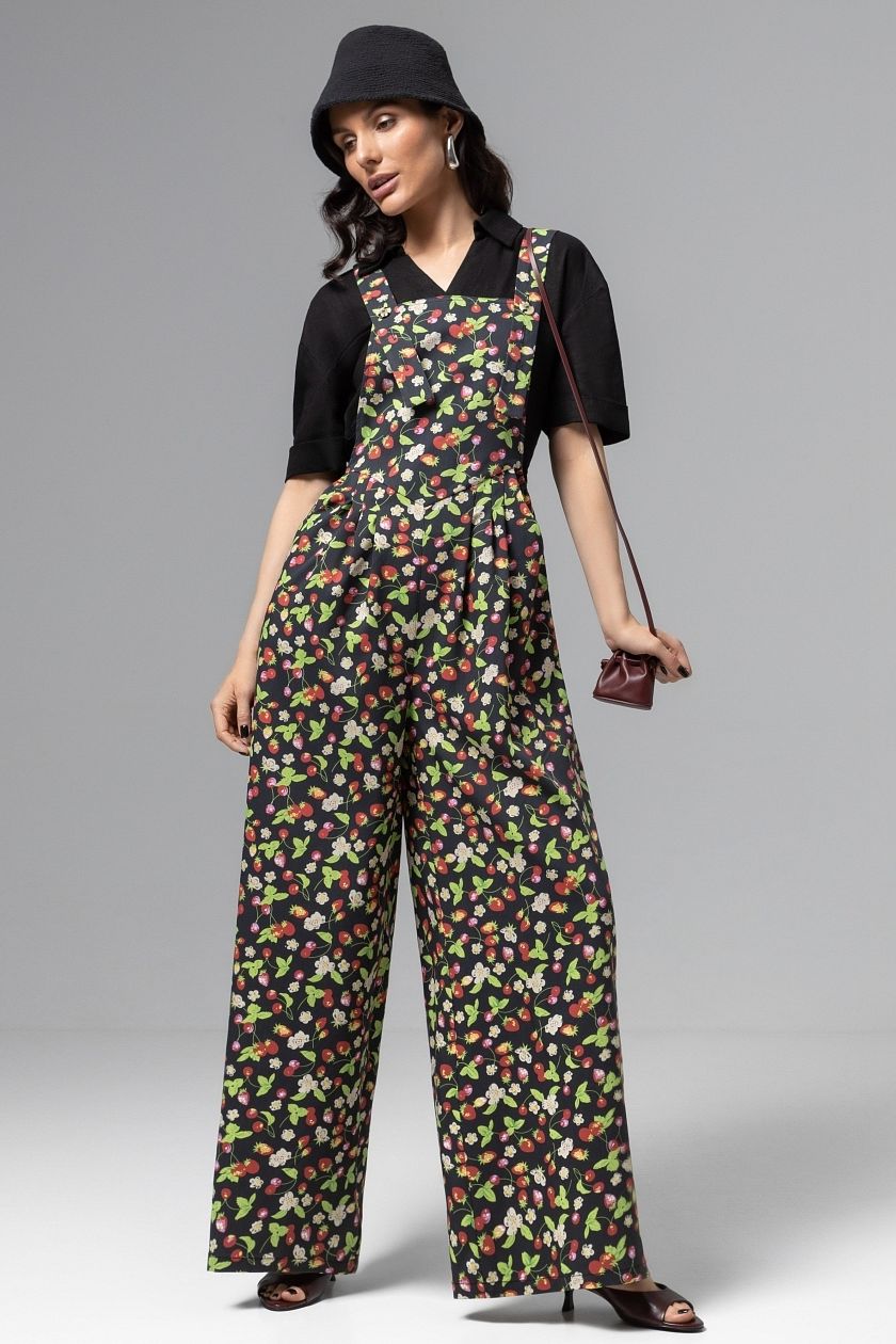 Комбинезон чёрный из лёгкой джинсы от компании Charutti. Модель с широкими штанинами. Акцентные пуговицы на бретелях позволяют регулировать посадку и длину изделия. Логотип бренда на спинке. Комбинезон с карманами. Идеальный выбор для Вашего стильного гардероба.