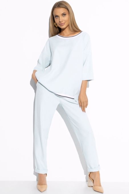 Платье трикотажное серо-голубого цвета с рукавом-фонарик Элси №2