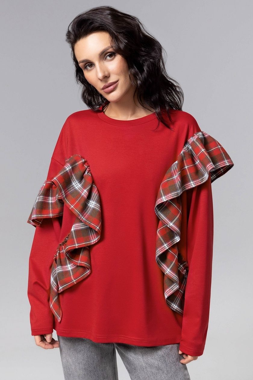 Лонгслив дизайнерский красного цвета