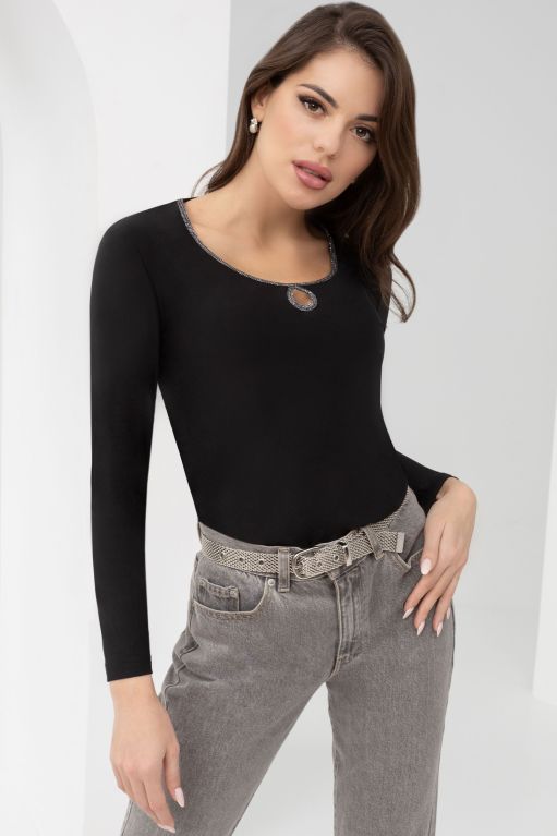 Повседневная женская блузка от компании Charutti. Модель полуприлегающего силуэта, выполнена из трикотажного полотна "масло". Круглый вырез горловины с вырезом "капля". Втачные длинные рукава. Идеальный выбор для Вашего стильного гардероба.