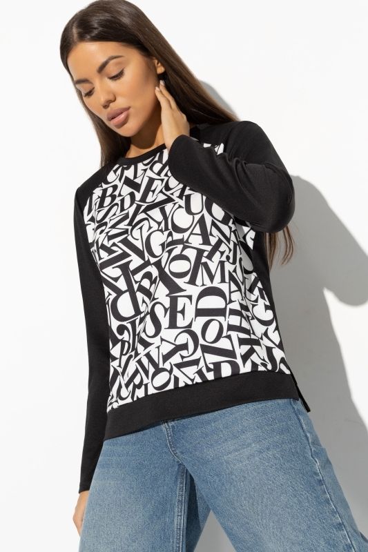 Свитшот трикотажный чёрный с контрастным принтом
