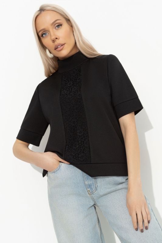 Водолазка чёрная комбинированная с кружевом
