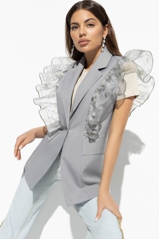 Жилет серый с объёмными рюшами из органзы