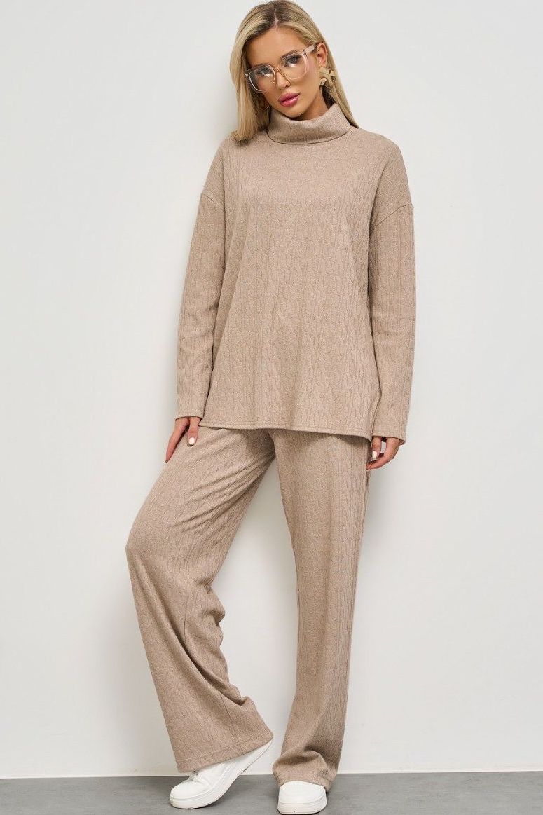 Брюки широкие бежевые трикотажные