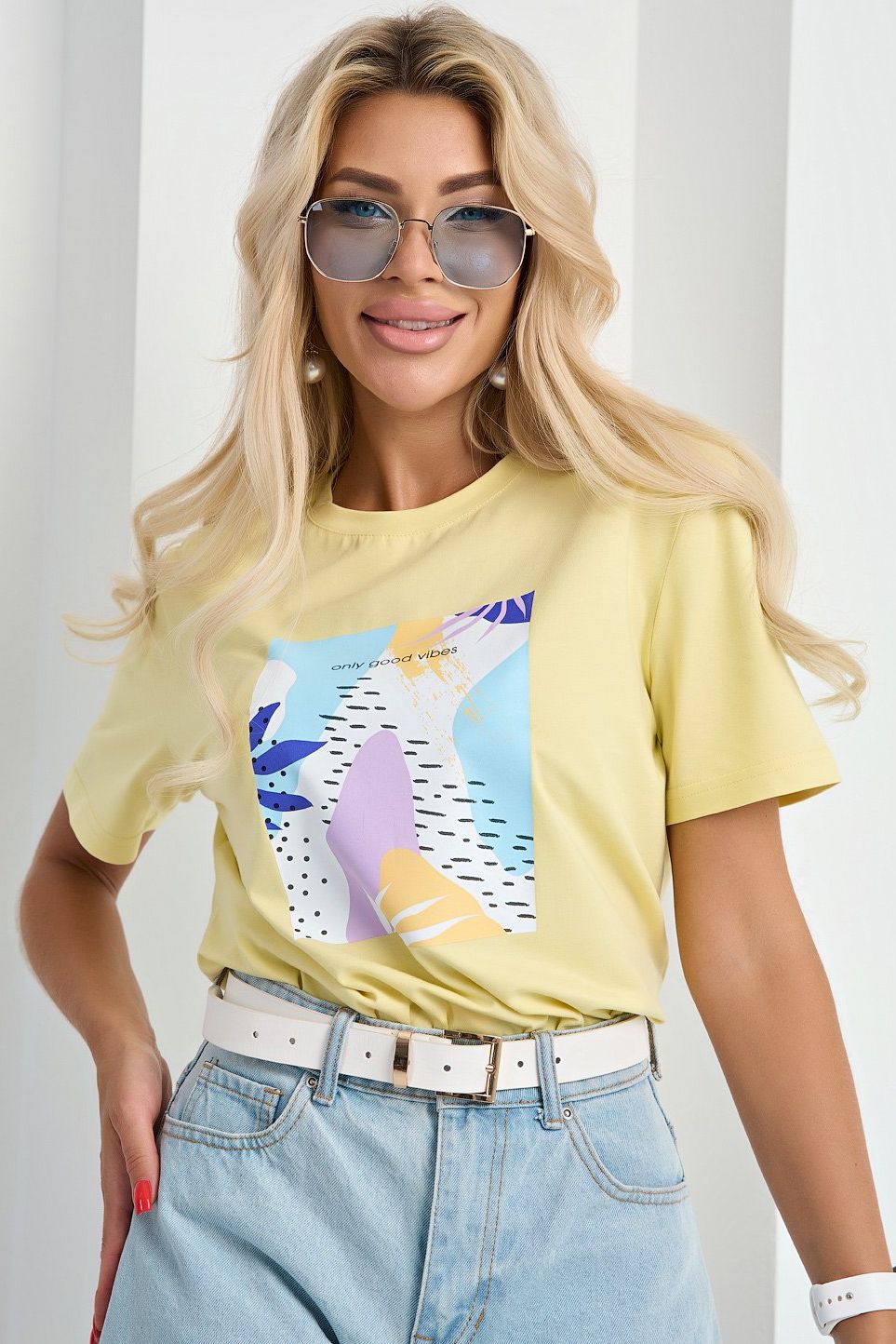 Чёрная трикотажная футболка с брошью-цветком из органзы