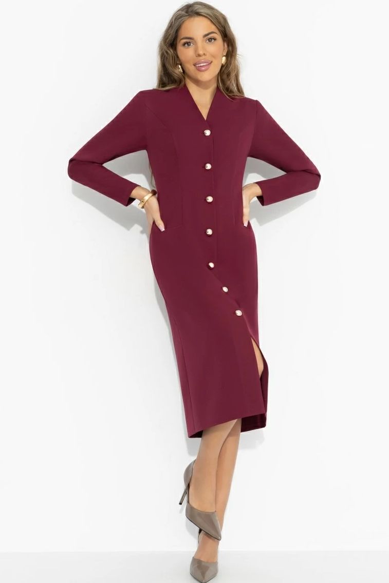 Платье бордовое на пуговицах