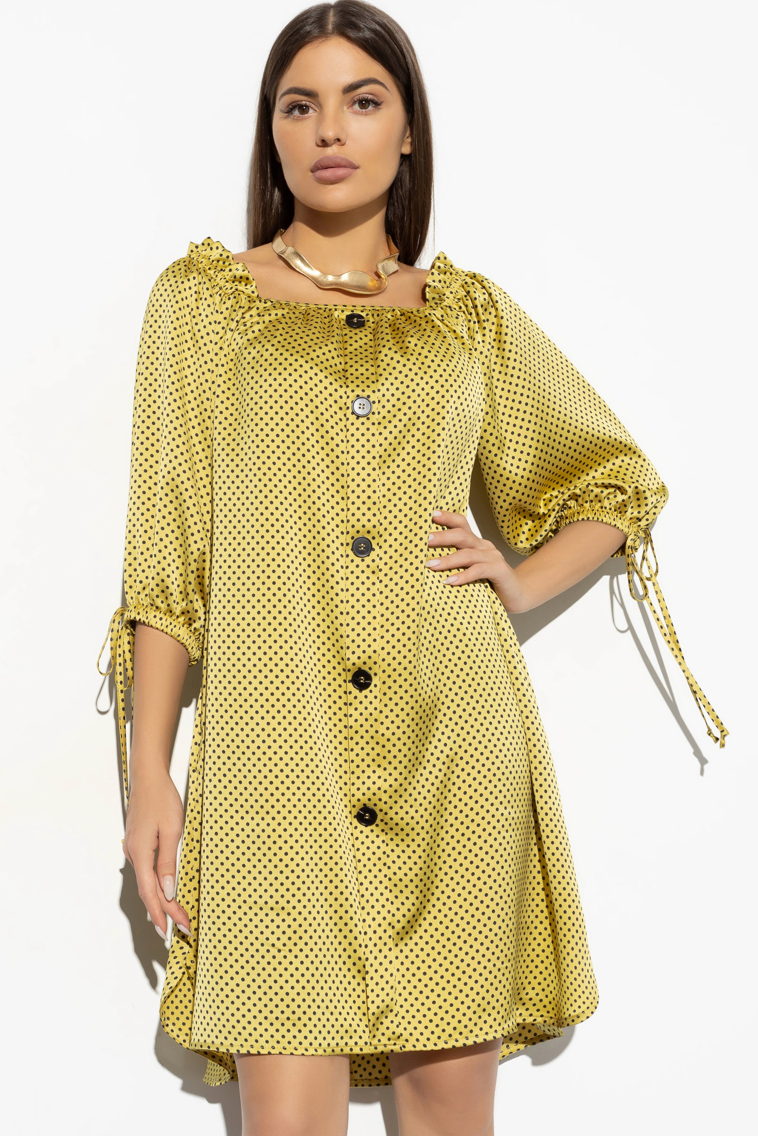 Жёлтое платье в горох