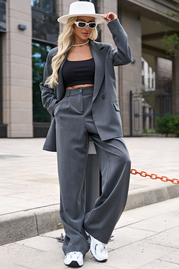 Брюки серые с карманами от производителя Jetty. Модель широкого силуэта с защипами по переду, выполнена из костюмного полотна. Притачной пояс оснащен петлями для ремня. Застёжка на пуговицу и молнию. Идеальное решение для Вашего стильного гардероба. Ремень в комплект не входит.