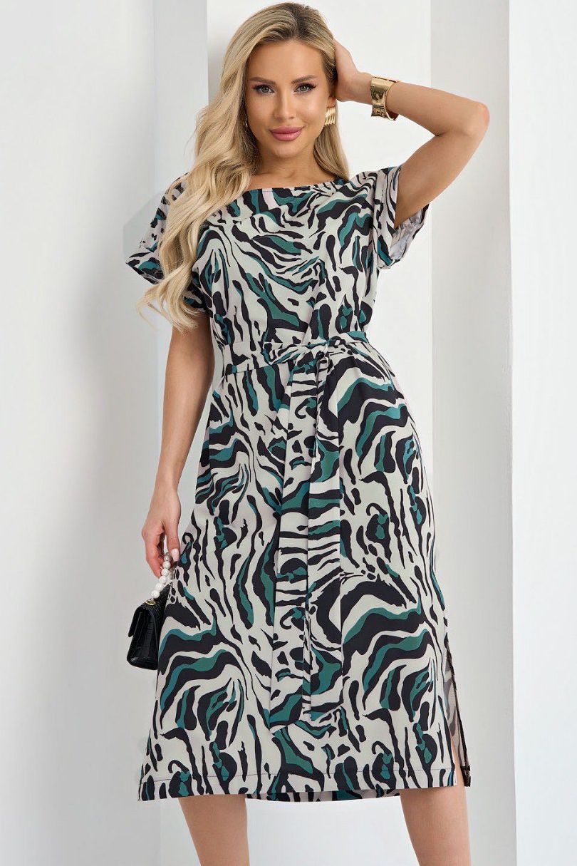 Платье А-силуэта зелёного цвета с пуговицами по спинке