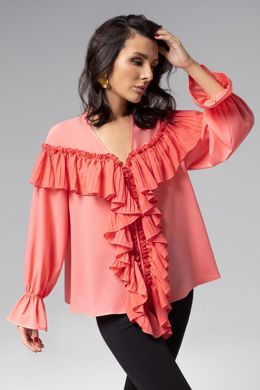 Блузка нарядная розовая с рюшами