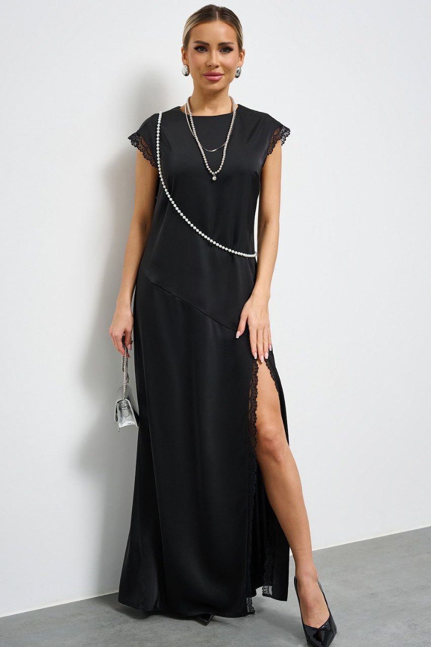 Платье длинное чёрное с высоким разрезом
