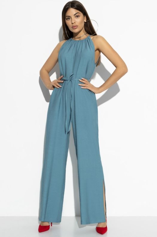 Комбинезон синий с эффектными разрезами на штанинах от компании Charutti. Модель полуприлегающего силуэта, выполнена из костюмной ткани "гальяно". Фигурный вырез горловины. Без рукавов, на тонких бретелях. Линия талии дополнена тонким пояском со шлевками. Идеальный выбор для Вашего стильного гардероба.