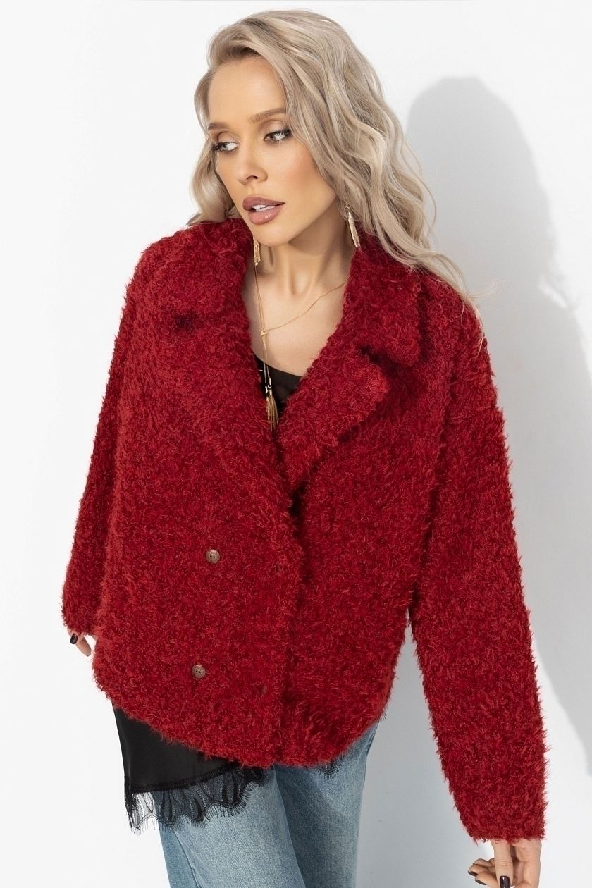 Полупальто красное с акцентным подкладом