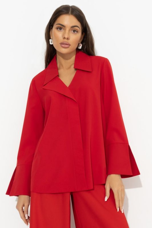 Блуза красная с разрезами на рукавах