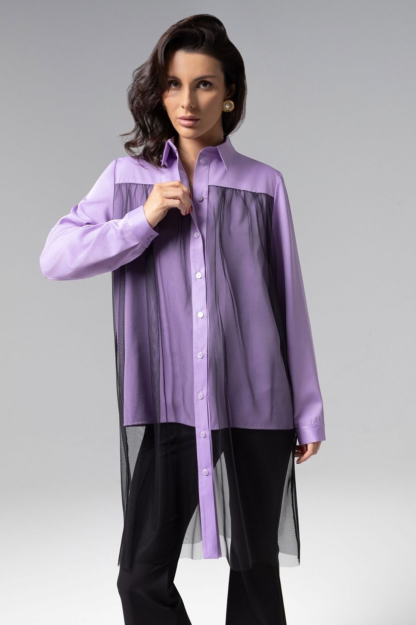 Рубашка дизайнерская сиреневого цвета от компании Charutti. Модель свободного силуэта, выполнена из хлопка-стрейча. Классический силуэт рубашки добавляет образу скульптурную выразительность. Сетка сохраняет струящуюся форму, контрастируя с плотным нижним слоем. Авангардный фасон превращают классическую рубашку в арт-объект.