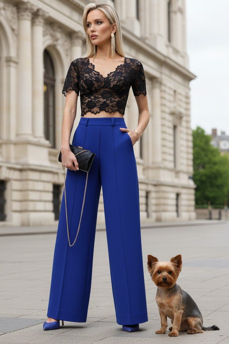 Блузка укороченная кружевная тёмно-синяя