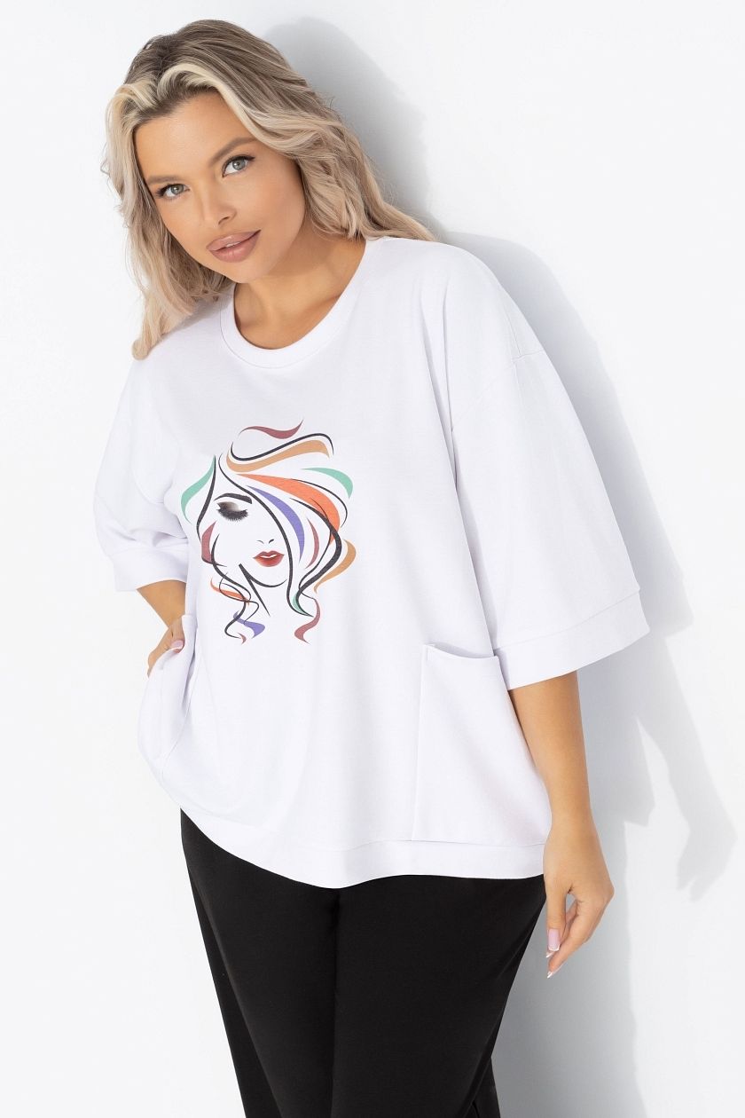 Футболка белая свободная с карманами