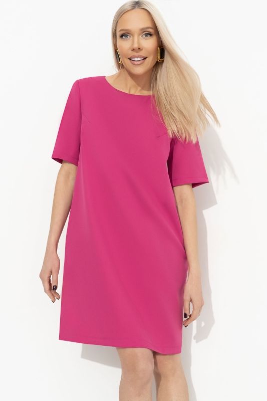 Платье цвета фуксии с карманами от компании Charutti. Модель прямого силуэта, выполнена из костюмного ткани "барби". Круглый вырез горловины. Втачной короткий рукав. Это Ваш отличный образ, в котором вы всегда чувствуете себя уверенно.