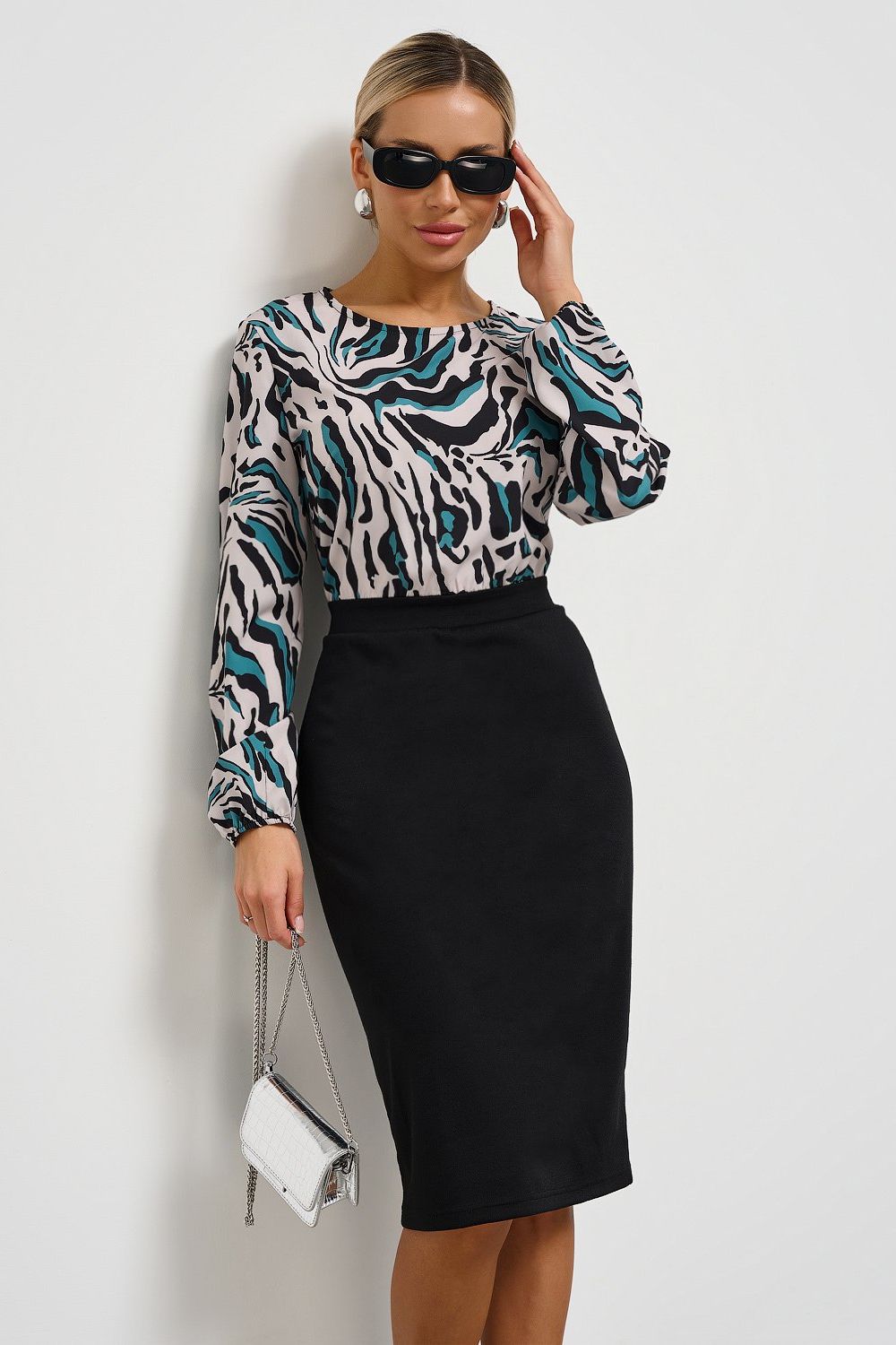 Чёрное комбинированное платье с притачным воланом 50 размера