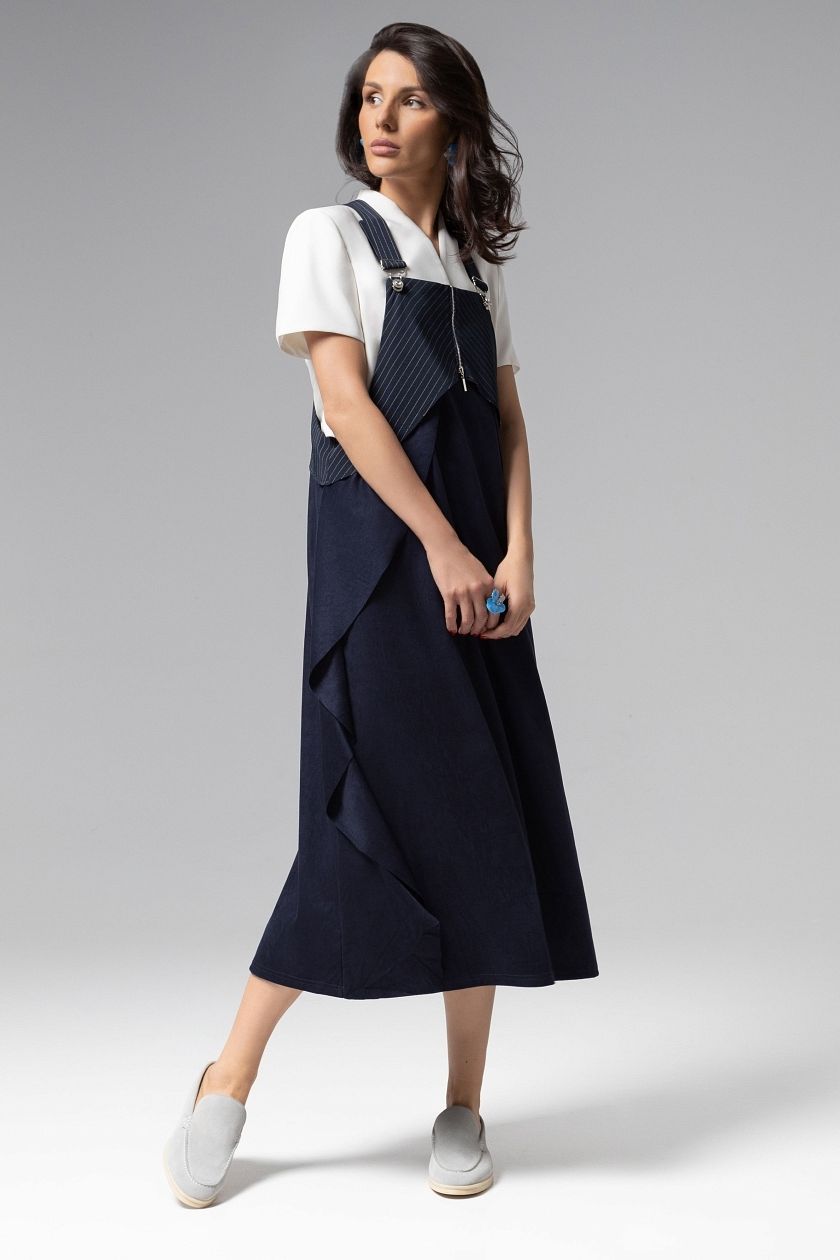 Сарафан из мягкой замши в синем цвете от компании Charutti. Модель свободного силуэта, Дизайнерская лямки добавляет дерзкий акцент, превращая базовый фасон в ультрамодный. Сарафан на трикотажном подкладе. Элегантный и женственный лук вам гарантирован!