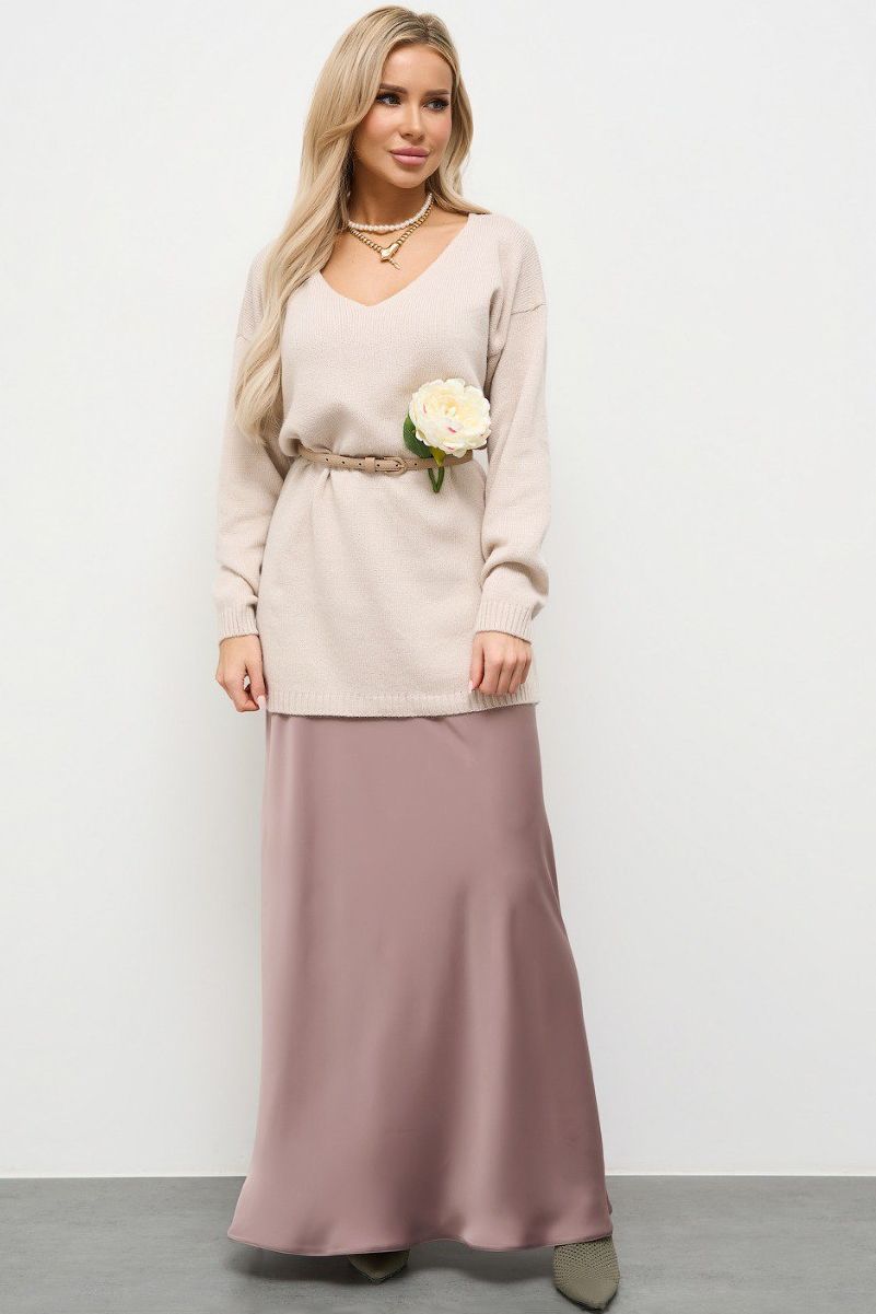 Юбка длины макси атласная тёмно-бежевая