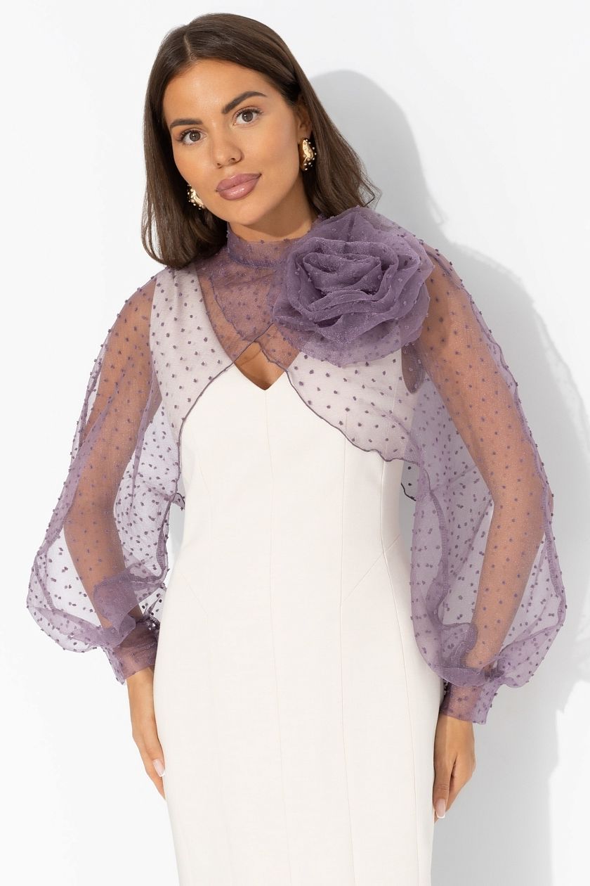Платье трикотажное серо-голубого цвета с рукавом-фонарик Элси №2